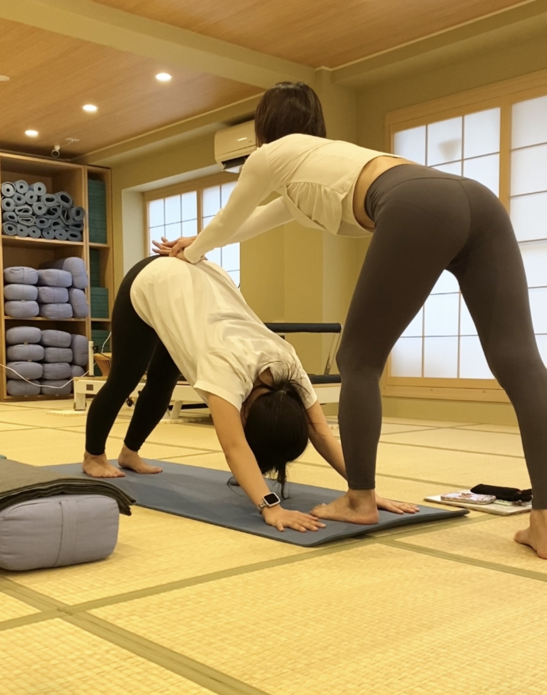 もう取り慣れているダウンドックですが、心地よさを更に追求✨関節の使い方や詰まりのない位置、力のかけ具合など確認しました。今までと少しポジションが異なるため、慣れるまでは力みなど入ってしまうかもしれませんが、背中が詰まりなく伸びる方向を見つけることができました♡